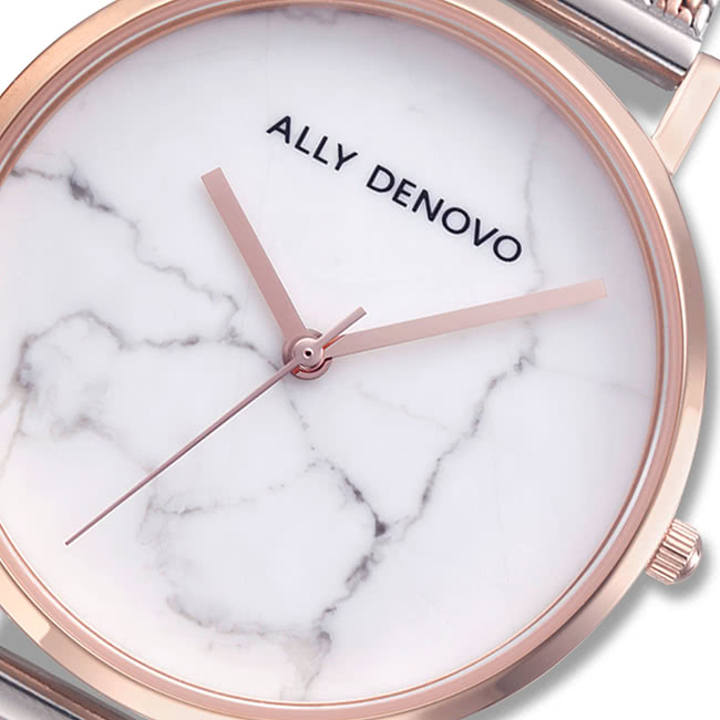 Ally Denovo Carrara Mable 腕錶的錶盤取自藝大利高級大理石原石,因此每支手錶紋理皆不同,是獨ㄧ無二的藝術之作。